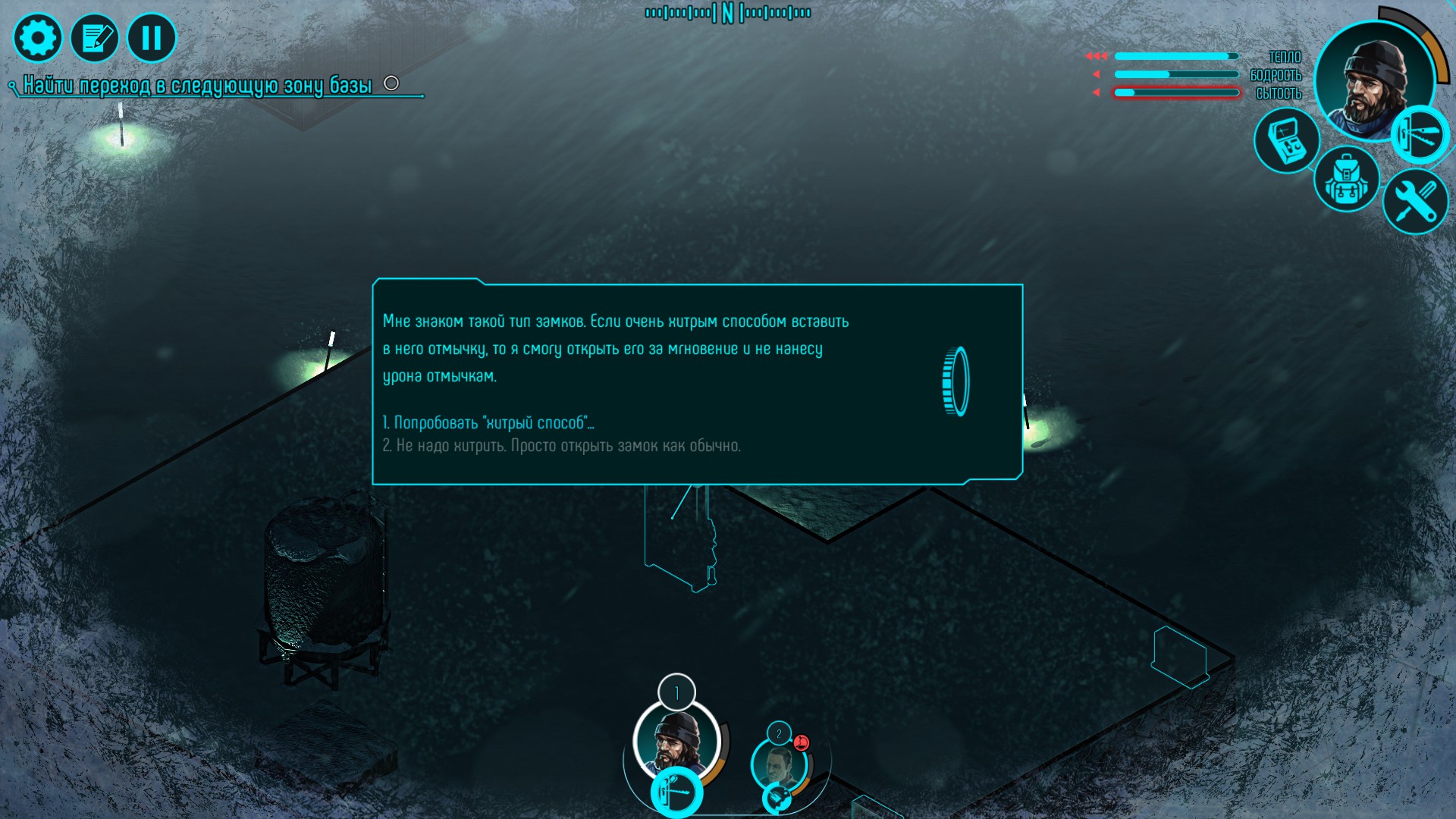 Помимо умения вовремя отправлять полярников на нужные задачи, дабы ни один не простаивал, следует еще и следить за потребностями персонажей и постоянно решать, что в данный момент важнее – рвануть по-быстрому на пределе сил лезть в следующую зону или же исследовать уровень полностью, дабы пополнить запасы аммуниции и возможно, найти третьего персонажа в команду.