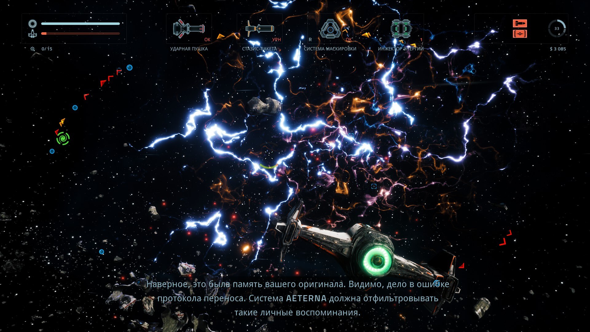 С ориентированием в пространстве ему незамедлительно помогает местный AI корабля – бесстрастно сарказмирующий механический голос проводит курс обучения и говорит главному герою, что «надо лететь к конечной точке, а зачем – ты даже не гражданин, тебе знать не положено».
