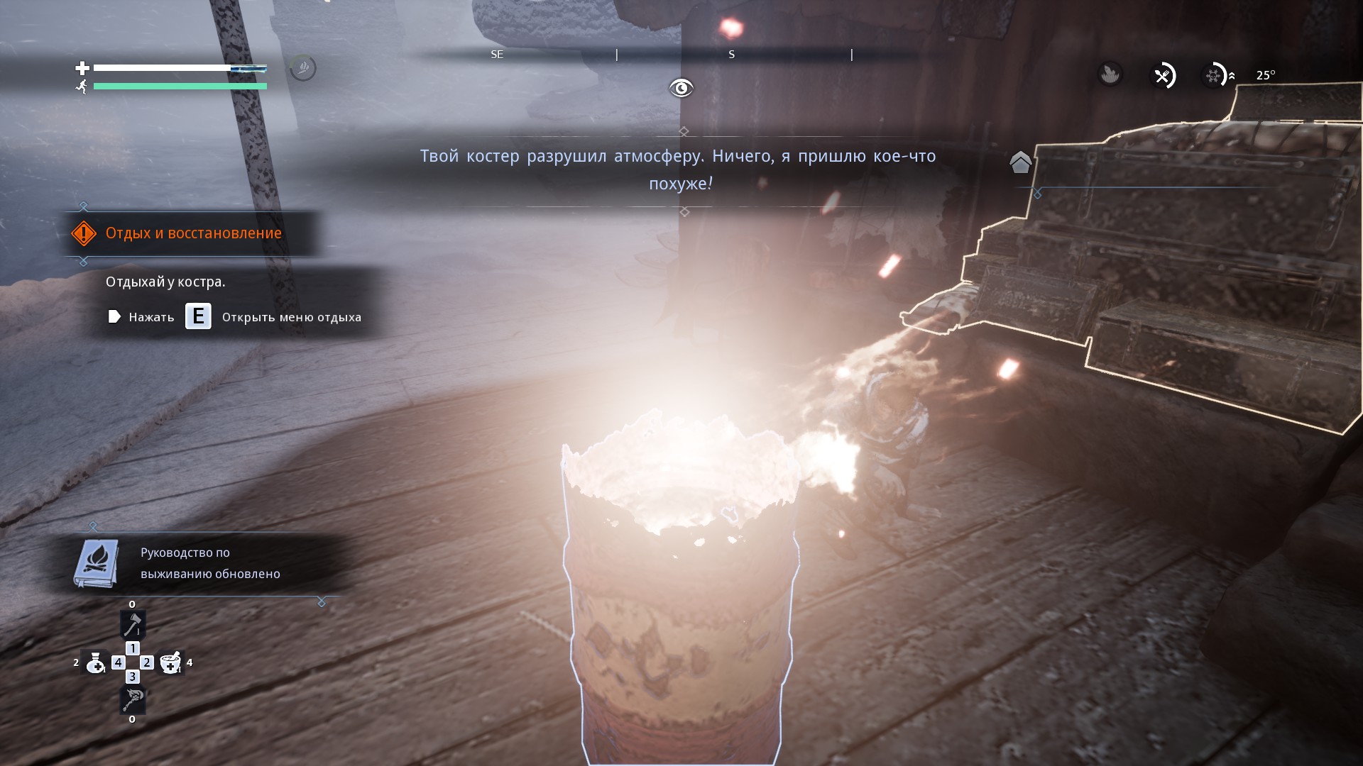 Потихоньку, полегоньку персонаж приодевается, приобувается и обвешивается всякими целебными припарками, притирками да согревающими коктейлями – ведь здешний мороз просто берет и занимает часть полоски максимального здоровья, аки радиация в Fallout 4.